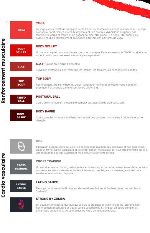 Avec votre forfait vous avez accès au plateau et aux cours collectifs à volonté, pendant les horaires d'ouverture.